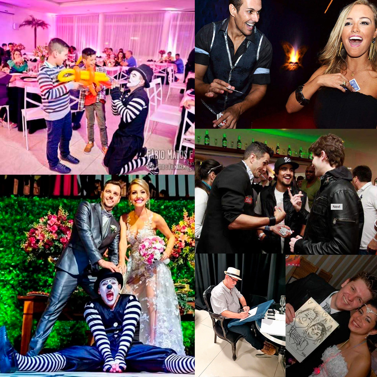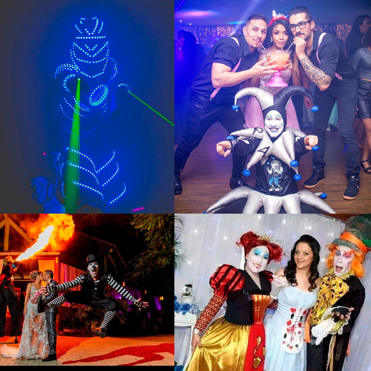 Para todos os gostos, são contratados para fazer a recepção de sua festa e/ou animar a pista de dança. Ótima opção para agradar seus convidados, profissionais animados esbanjando seus talentos cada um com sua função. São estes: Robô de led, Perna de Pau Bobo da Corte, Homem Fogo, Mímico, Caricaturista, Mágico, Príncipe Fera, Show Drag, Chapeleiro Maluco e Dama de Copas.